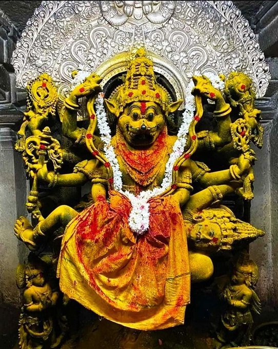 Mahavishnu took Narasimha Avataram to save Prahlada, who was a great Bhakta, from Hiranyakashipu. Hiranyakashipu gained a wish that he should not be killed either in day or night, inside or outside, any Devas, man or animal or by any weapon. So Mahavishnu took Narasimha Avatar, half man and half lion, destroys him during Sandhya time which is not day or night, on the door step which is neither inside or outside.