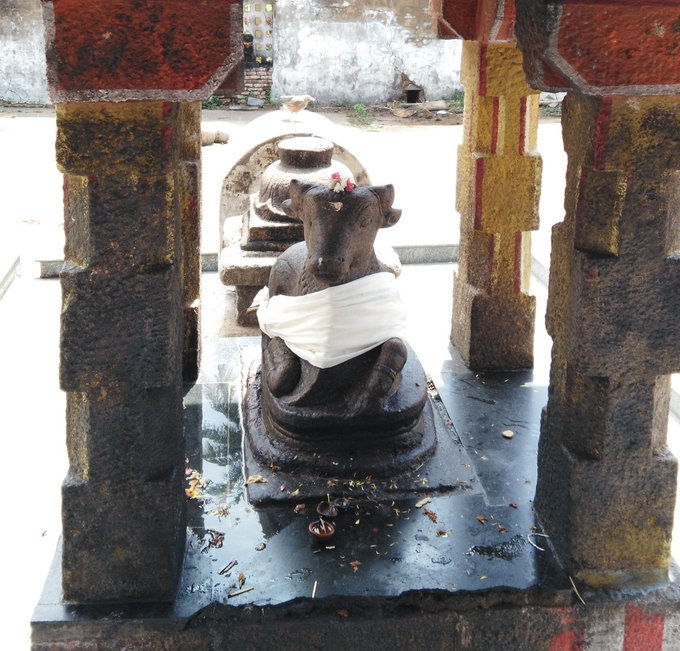 Mahavishnu used a dharbai to clear the Kamandalam and Sukracharya lost his eye. Sukracharya, became angry and cursed Mahavishnu. It is said that Mahavishnu did tapasya to Paramashiva here for relieving himself.